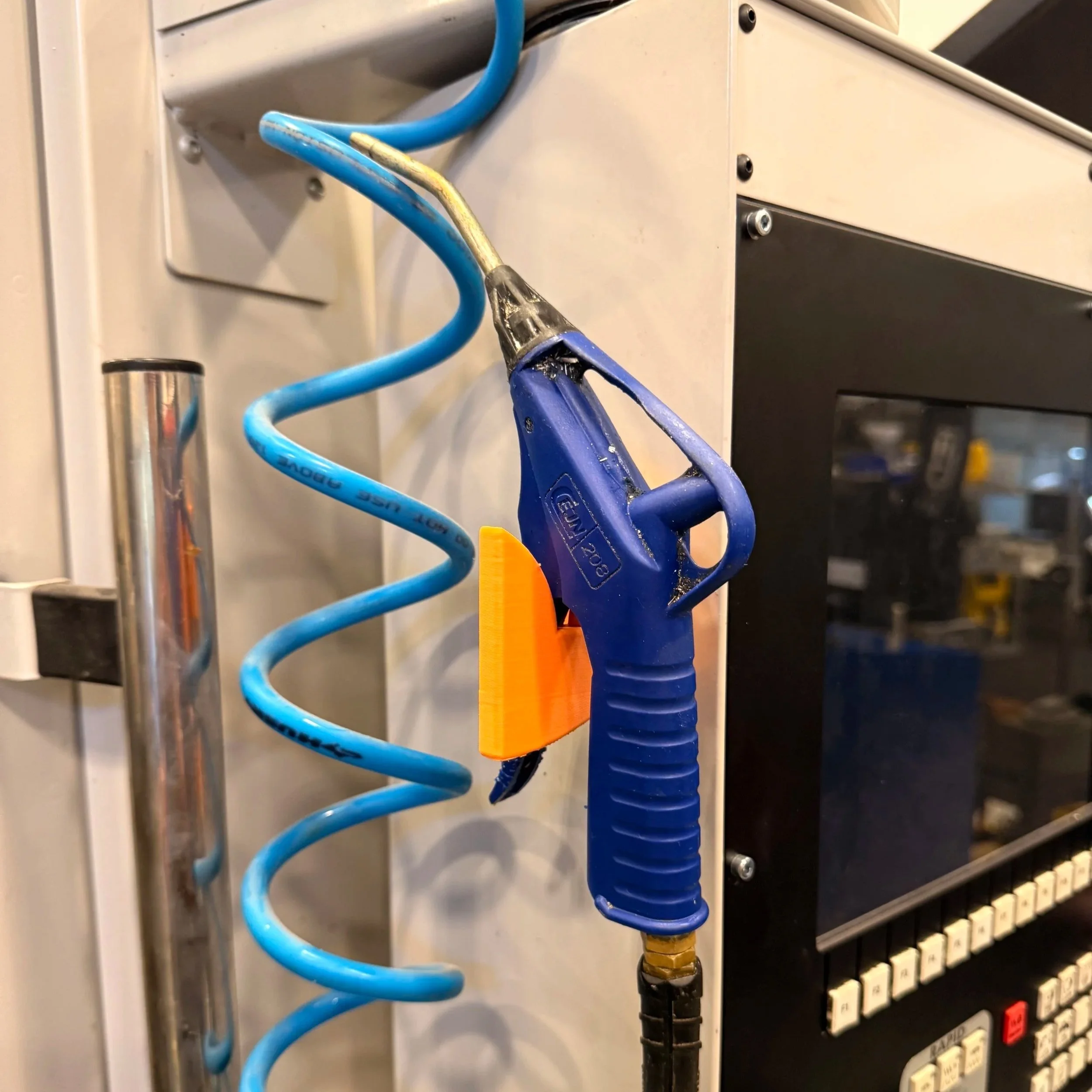 Holding pneumatic airguns at workstations for quick, consistent access