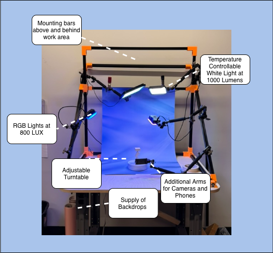 The Robotics Factory supports early-stage robotics startups as they design and build new products, where thorough documentation plays a critical role in both internal development and the organization’s mission as a non-profit accelerator. Establishing a well-lit, dedicated photography station enables consistent, high-quality visual records of prototypes and progress, streamlining documentation workflows and strengthening the technical and branding materials produced by resident teams.